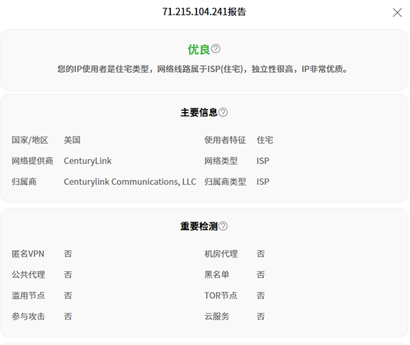 Proxy Seller价格最便宜的代理ip。Proxy Seller提供了不同的代理类型供您选择,有住宅代理、IPV4、IPV6、ISP和移动代理,其中ISP代理也是住宅代理。时间周期是按周和月计算的,网站国内可以直接打开,中文网站。下图是Proxy Seller的动态住宅IP的测试图。